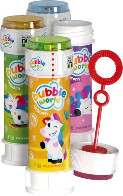 Bublifuk jednorožec o obsahu 60 ml. Součástí víčka je hra a foukátko. Lze zakoupit i jako celý display, kde je 36ks.