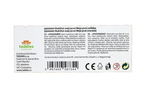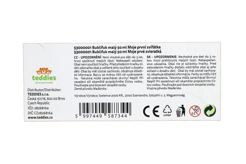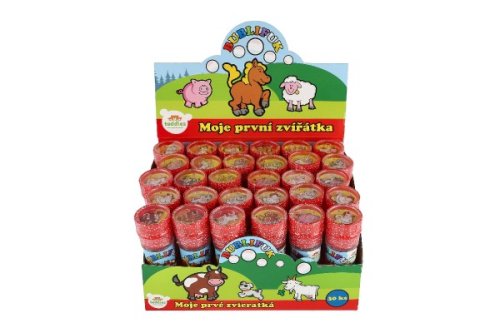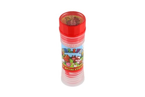 Senzační bublifuk s motivem Moje první zvířátka má obsah 50 ml. V barevném víčku se navíc nachází zábavná hra! Foukátko je součástí víčka. Vhodné od 6 let.