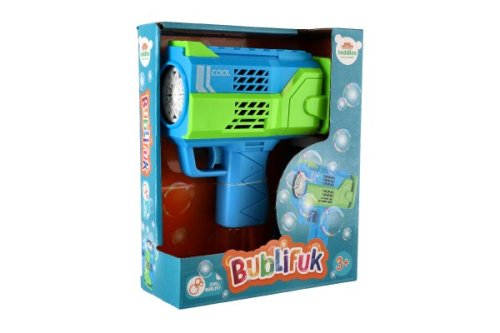 Nebaví Vaše děti foukat bubliny po jedné? V tom případě je tato pistole přímo pro vás. Odjistěte, nalijte náplň do nádoby, stiskněte spoušť a užívejte si duhový ráj bublin. Nekonečná zábava pro děti i dospělé, bublifuk bude báječná legrace nejen na teplé letní dny. Bubliny jsou jako kouzelné balonky, které si dítě může vykouzlit a obdivovat jejich duhovou barvu. Bublifuk pistole s náplní. Rozměry balení 18 x 23 x 8 cm. Vhodné pro děti od 3 let.