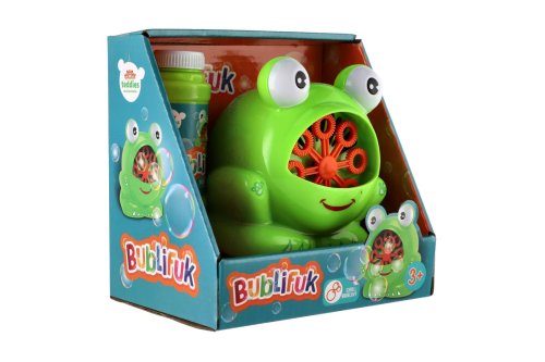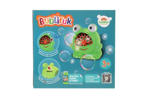 Po zmáčknutí spínače začne žábička chrlit bubliny. Součástí balení je náplň. Baterie 4 x AA nejsou součástí balení. Rozměřy balení 17 x 16 x 12 cm. Vhodné pro děti od 3 let.