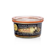 • Vyrobena ručně z kvalitních surovin, tato paštika potěší všechny, kteří mají rádi vyváženou kombinaci šťavnatého masa, jemné sladkosti cibulky a pikantního nádechu chilli