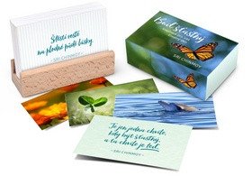 „Je jen jedna chvíle, kdy být šťastný, a ta chvíle je teď.“ Chcete-li do svého života vnést hlubší pocit štěstí, sáhněte po této sérii 55 inspirujících aforismů od Sri Chinmoye. Aforismy vycházejí z jeho hluboké moudrosti, jsou srozumitelné pro každého a přinášejí inspiraci k nalezení trvalejšího zdroje štěstí. Stejně jako meditace jsou i tyto aforismy jako malé ostrůvky v rozbouřeném oceánu – dávají nám okamžitý pocit klidu a přenáší nás zpět do srdce. Nyní vychází také s praktickým dřevěným stojánkem na vystavení kartiček.