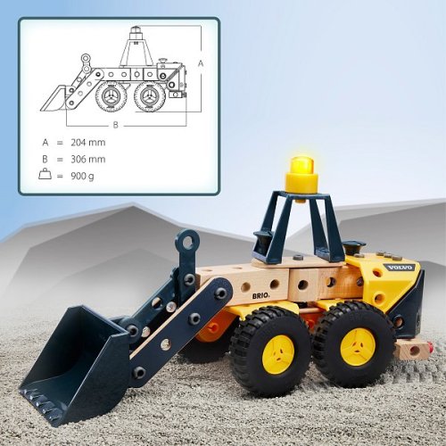 Zvedněte největší náklady pomocí kolového nakladače Volvo. Tato stavebnice založená na ikonickém stroji Volvo obsahuje realistické herní funkce, jako je vyklápěcí kbelík a také výstražné světlo baterie. Uchopte snadno ovladatelný nástroj a podle pokynů k sestavení postavte tento stroj kus po kuse. Pak nechte fantazii prozkoumat všechny aspekty stavební hry s tímto robustním kusem stroje vyrobeného z masivního bukového dřeva a vysoce kvalitních plastů. Rozměry: 31 x 20 x 9 cm. Věk: 3+