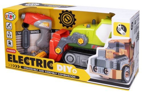 Buldozer šroubovací s elektrickým šroubovákem. Obsah balení - buldozer s elektrickým pohonem (rozměry 30x14x19,5 cm), elektrický šroubovák, sada klíčů a šroubovák s násadami. Elektrickou jednotku šroubováku je možné vyjmout a vložit do buldozeru. 2xAA baterie do šroubováku, nejsou součástí.