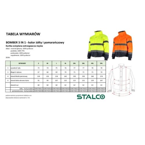 Bunda zateplená, výstražná BOMBER, 3 v1, 4XL, oranžová, STALCO