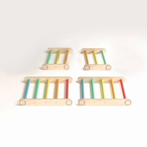 Mít vlastní herní park přímo doma to je sen každého dítěte. Tato malá lezecká sada nabízí mnoho variant sestavení, které snadno změníte bez použití nářadí. Je vhodná pro menší děti i pro ty, které už rády zdolávají výšky. Díky kombinaci přírodního dřeva a nádherných duhových barev se stane atraktivní součástí dětského pokoje nebo herny. Sestava se skládá ze dvou trojúhelníku. Velký trojúhelník má rozměry 51,5 x 63,5 x 66 cm (výška × hloubka × šířka) a malý trojúhelník je o rozměrech 31,5 × 63,5 × 43,5 cm (výška × hloubka × šířka). Produkt je vyroben z kvalitní březové překližky; barevné odchylky, suky či drobné opravy ve dřevě jsou přirozené a dodávají výrobku jedinečný charakter. Hlavní vlastnosti: multifunkční využitínosnost 80 kgvzdálenost mezi příčkami je 8,5 cmtrénuje motoriku a rovnováhuskvělý doplněk do dětského pokoje či herny