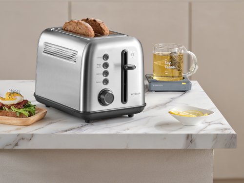 Tento topinkovač je vybaven dvěma širokými otvory, z nichž každý měří 3,5 cm a je vybaven samostředicími vodítky. Tato vodítka zajišťují dokonalé vyrovnání různých druhů plátků chleba, od silných bochníků až po tenký sendvičový chléb a zajistí tak rovnoměrné opečení. Ať už dáváte přednost lehce zlatavé křupavé nebo dohněda opečené, tento topinkovač vám pokaždé zajistí perfektní toasty a zpříjemní vám snídaňovou rutinu.