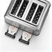 Má kompaktní retro design, který ušetří místo na vaší kuchyňské lince. Úložiště kabelu na spodní straně umožňuje elegantně uklidit váš topinkovač. Je vyroben z nerezové oceli, což zajišťuje nejvyšší kvalitu.
