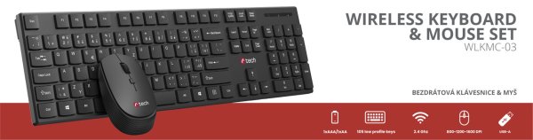 Dopřejte si absolutní volnost pohybu a maximální pohodlí při každodenní práci s bezdrátovým setem klávesnice a myši C-TECH WLKMC-03. Tento elegantní černý set využívá spolehlivou 2,4GHz bezdrátovou technologii s dosahem až 10 metrů, která vám zajistí stabilní připojení bez výpadků nebo zpoždění. Kompaktní USB-A přijímač stačí jednoduše zapojit do počítače a můžete okamžitě začít pracovat - bez složité instalace díky Plug & Play technologii.