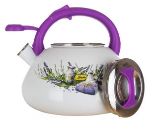 Smaltovaná konvice pískací je vyrobena z ocelového plátu s 2vrstvým smaltovaným nástřikem a dekorem ve stylu Lavender. Má plastové držadlo barevně laděné do designu konvice, snímatelnou píšťalu a dno opatřeno piktogramy o použití konvice.