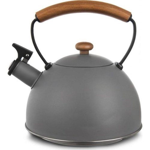 Stylový matný čajník v šedé barvě s odklápěcí píšťalkou je vyroben z kvalitního nerezu .