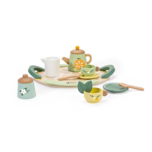 Proměňte chvíle u čaje v jemný rituál s různými doplňky, pozvěte své přátele na čajový dýchánek! Naše rozkošná 14dílná čajová souprava rozvíjí představivost a podporuje kreativitu. Obsahuje: dvě sady šálků a talířků, konvičku na čaj s pokličkou, konvičku na mléko, cukřenku s víčkem, 2 lžičky, 2 různé čaje a podnos, na který se vše vejde. Všechny části jsou v jemných pastelových barvách laděné do zelena. Rozměr balení: 28 x 24 x 9 cm Vhodné pro děti od 3 let