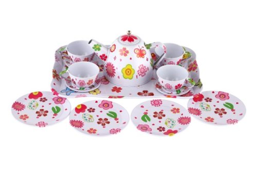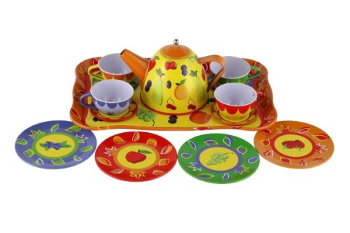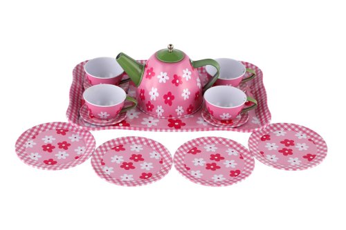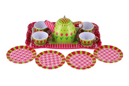 Chtěli byste si dávat čaj o páte, jako to dělají v pohádkách? S touto plechovou čajovou sadou to není žádný problém! Pozvěte kamarádky, posadťe se ke stolu a popovídejte si u setu, kterému nic nechybí! V sadě je 14 ks nádobí. Pozor, sada není určena pro reálnou přípravu a pití čaje či jiných nápojů. Rozměry balení: 25x 17x 11 cm Vhodné pro děti od 3 let