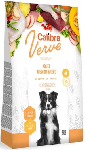 Kompletní granulované krmivo s čerstvým kuřecím masem bez obilovin pro dospělé psy středních plemen s hmotností 10-30 kg. Krmivo obsahuje 30 % čerstvého kuřecího masa, které spolu s kvalitním kachním proteinem zajistí psovi optimální dávku výživy. Krmivo odpovídá nejvyšším požadavkům na přirozené stravování psa v souladu s jeho fyziologickými potřebami. Čerstvé maso je vysoce výživným zdrojem bílkovin. Vyznačuje se atraktivní chutí a jeho výhodou je, že je dobře snášeno i pejsky s citlivým zažíváním. Grain free receptura je tedy skvěle stravitelná. Kromě obsahu kvalitních zdrojů proteinu, které jsou z 75 % živočišného původu, obsahuje také adekvátní množství sacharidů a vlákniny, je tudíž energeticky pečlivě vyvážená. Hlavní výhody Calibra Calibra Dog Adult Medium Chicken & Duck: TRIPLE ACTIVE FORMULA – unikátní kombinace vybraných funkčních aditiv.