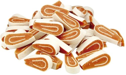 Zdravý, voňavý a lehce stravitelný pamlsek, který skvěle obohatí jídelníček vašeho mazlíčka. Lahodná pochoutka z kuřecího masa a tresky je pro pejsky neodolatelným mixem chutí. Obsahuje nenasycené mastné kyseliny pro zdravou kůži a srst. Doplňkové krmivo pro psy. Složení: Kuřecí maso, treska, rostlinný protein, glycerin, sorbitol. Analytické složky: Hrubý protein 35 %, obsah tuků 2 %, hrubá vláknina 3 %, hrubý popel 4 %, vlhkost 20 % Doporučené dávkování: Podávejte jako odměnu. Zajistěte dostatek čerstvé pitné vody. Uchovávejte na suchém a chladném místě. Po otevření obal opět uzavřete a uložte do chladničky. Není určeno pro konzumaci člověkem. Nedávejte absorbent vašemu psovi.