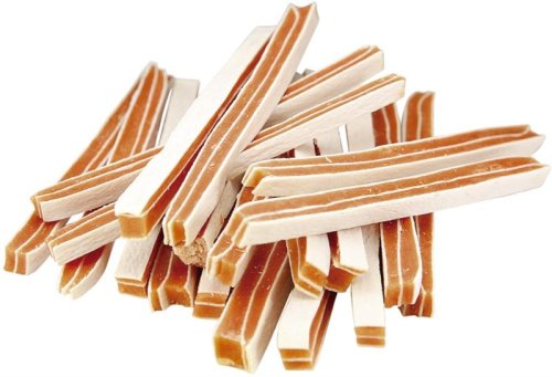 Zdravý, voňavý a lehce stravitelný pamlsek, který skvěle obohatí jídelníček vašeho mazlíčka. Lahodná pochoutka z kuřecího a rybího masa doplní energii a navíc obsahuje nenasycené mastné kyseliny pro zdravou kůži a srst. Doplňkové krmivo pro psy. Složení: Kuřecí maso, treska, rostlinný protein, glycerin, sorbitol. Analytické složky: Hrubý protein 49 %, obsah tuků 2 %, hrubá vláknina 4 %, hrubý popel 4 %, vlhkost 20 % Doporučené dávkování: Podávejte jako odměnu. Zajistěte dostatek čerstvé pitné vody. Uchovávejte na suchém a chladném místě. Po otevření obal opět uzavřete a uložte do chladničky. Není určeno pro konzumaci člověkem. Nedávejte absorbent vašemu psovi.
