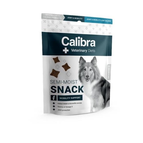 Veterinární pamlsky kompatibilní s indikacemi: podpora kloubů – degenerativní onemocnění kloubů, před – a pooperační podpora, kontrola hmotnosti ve spojení s léčbou problémů pohybového aparátu. Kompatibilita veterinárních pamlsků Calibra s veterinárními dietami umožňuje výbornou kombinaci krmení veterinární dietou a použití odměny pro psa. Jedinečné složení a parametry pamlsků pokrývají nutriční požadavky těchto indikací veterinárních diet. Pamlsky obsahují čerstvé maso pro skvělou chutnost. Receptura Mobility Support Semi-moist Snack je kompatibilní také s veterinární dietou Calibra VD Dog Joint & Mobility a Calibra VD Dog Joint & Mobility Low Calorie. Benefity receptury Mobility Support Semi-moist Snack: