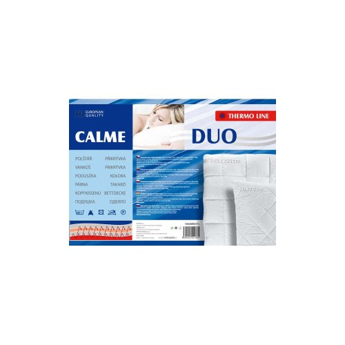 Polštář a přikrývka THERMO LINE Duo, dvouvrstvá vysoce hřejivá prošitá přikrývka 140 x 200 cm, polštář 70 x 90 cm, výplně - silikonované PE vlákno, deka 1600 gr.. Teplotní komfort zaručuje i vzduchová vrstva, vzniklá mezi dvěma přikrývkami spojenými bočním švem. Přikrývka je nadýchaná a dobře přilnavá.Vyrobeno v EU.
