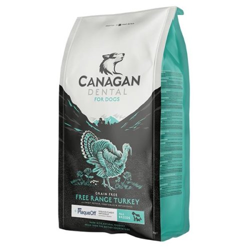 Kompletní krmivo pro psy Canagan Dental je pečlivě připravená bezobilná receptura, jejíž hlavní složku tvoří krůtí maso. Speciální složka ProDen PlaqueOff® pomáhá přirozeně snižovat tvorbu zubního plaku (do slin uvolňuje přírodní složky, které rozkládají bakteriální povlak na zubech, na němž se usazuje zubní plak). Je vyroben z mořských řas získávaných podél severoatlantického pobřeží. Speciální robustnější tvar granulí a extra křupavá konzistence pomáhají udržovat zuby pěkné a čisté. Onemocnění dásní se v současné době vyskytuje u více než dvou třetin psů, může být velmi bolestivé a následně i vést ke ztrátě zubů. Díky této receptuře můžete uvedeným nepříjemnostem u vašeho psa předejít. *Nedoporučujeme podávat březím, kojícím fenám nebo psům léčeným s onemocněním štítné žlázy. Živočišné suroviny tvoří 60 % a zelenina s bylinkami 40 %. Krmiva Canagan nabízejí kvalitu bez kompromisů: