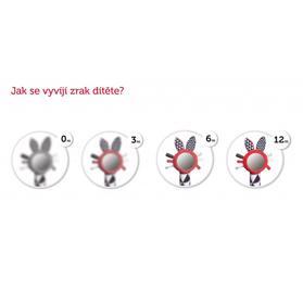 Zrak dítěte je po narození nejméně rozvinutým smyslem. Tma, která převládá v děloze, nedovoluje, aby se zrak v prenatálním období plně rozvinul. Po narození je zrak dítěte rozmazaný a mlhavý. Dítě vidí pouze obrysy v rozmezí 20-30 cm, velké tvary a prvky z prostředí. Asi po měsíci začne vidět barvy, zpočátku červené a černé. Asi za tři měsíce si začne všímat dalších výrazných barev. Přibližně ve věku šesti měsíců začíná vidět detaily na obrázcích a také vidí mnohem jasněji. Ve dvanáctém měsíci života je již zrak dítěte plně vyvinut jako u dospělého a stává se skvělým nástrojem pro objevování světa. Senzorické hračky z nové kolekce SENSORY tak pomáhají stimulovat zrak dítěte a trénují schopnost soustředit pozornost už od prvních týdnů života.