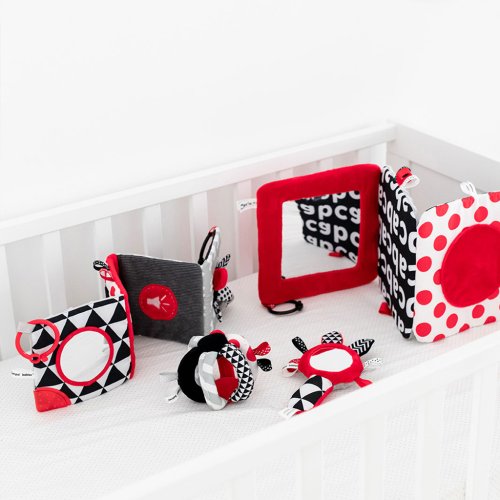 Zrak dítěte je po narození nejméně rozvinutým smyslem. Tma, která převládá v děloze, nedovoluje, aby se zrak v prenatálním období plně rozvinul. Po narození je zrak dítěte rozmazaný a mlhavý. Dítě vidí pouze obrysy v rozmezí 20-30 cm, velké tvary a prvky z prostředí. Asi po měsíci začne vidět barvy, zpočátku červené a černé. Asi za tři měsíce si začne všímat dalších výrazných barev. Přibližně ve věku šesti měsíců začíná vidět detaily na obrázcích a také vidí mnohem jasněji. Ve dvanáctém měsíci života je již zrak dítěte plně vyvinut jako u dospělého a stává se skvělým nástrojem pro objevování světa. Senzorické hračky z nové kolekce SENSORY tak pomáhají stimulovat zrak dítěte a trénují schopnost soustředit pozornost už od prvních týdnů života.