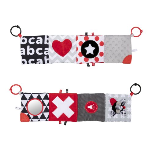 Kontrastní edukativní knížka SENSORY je ideálním pomocníkem pro první rok života miminka. Hračku je možné jednoduše upevnit díky klipům na požadované místo - kočárek, postýlku nebo autosedačku. Praktický doplněk disponuje šustícími a pískacími elementy, zrcátkem, chrastítkem, kousátkem a odnímatelnými prvky. Senzorické barvy a různé textury materiálů stimulují rozvoj smyslů dítěte.