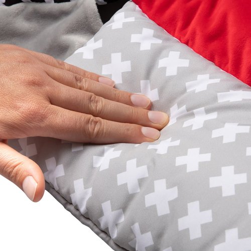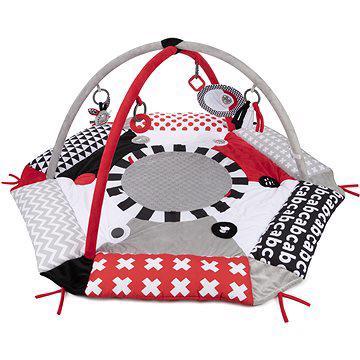 Kontrastní hrací deka z kolekce SENSORY je ideálním pomocníkem pro první rok života miminka. Disponuje interaktivními prvky, které zaujmou dítě na opravdu dlouhou dobu, podněcují jeho aktivitu a přispívají k rozvoji jeho smyslů. Edukativní deka je ideální již pro novorozence, jelikož hned po narození vidí pouze kontrasty. Je extra silná a načechraná, díky čemuž izoluje dítě od chladné podlahy. Hrací deka pak vyrůstá spolu s dítětem a může být použita jako ohrádka nebo jako klasická hrací podložka s hračkami na hrazdičce. Obsahuje 5 odnímatelných hraček: chrastítko, kousátko, zrcátko, barevnou pentličku a pískací/šustící prvek. Veškeré prvky lze od hrazdičky odepnout a mohou pak sloužit samostatně, jen tak na hraní nebo k upoutání pozornosti miminka. S kolekcí SENSORY jsou kompatibilní i další produkty, například závěsná hračka pro dětský kočárek/sedačku, kterou lze snadno připevnit k hrazdičce podložky.