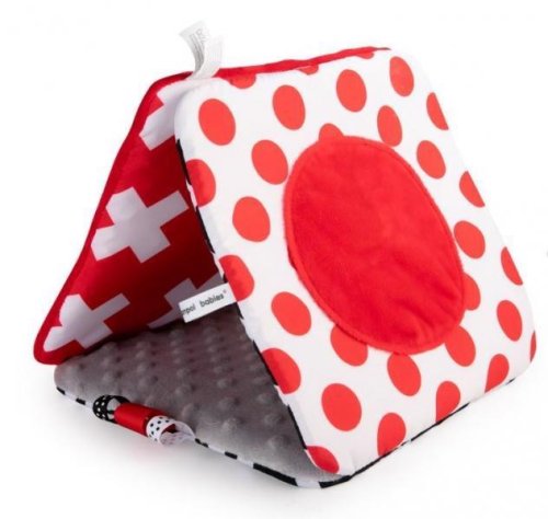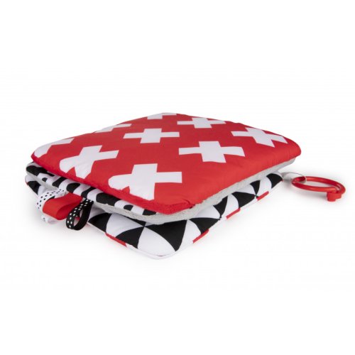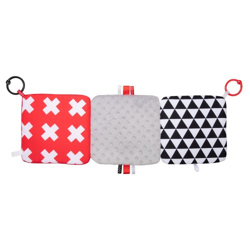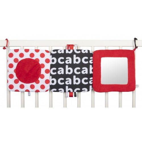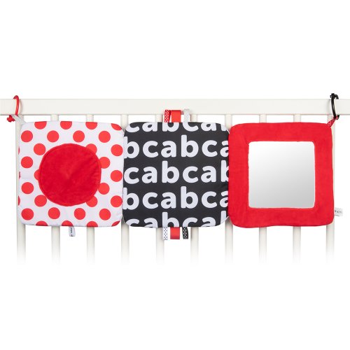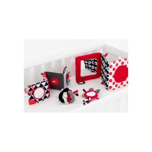 Kontrastní závěsné zrcadlo SENSORY je ideálním pomocníkem pro první rok života miminka. Hračku je možné jednoduše upevnit na požadované místo - kočárek, postýlku nebo autosedačku, ale i jednoduše skládat do tvaru pyramidy nebo rozkládat do tvaru knížky. Praktický doplněk disponuje šustícími a pískacími elementy a zrcátkem. Senzorické barvy a různé textury materiálů stimulují rozvoj smyslů dítěte.