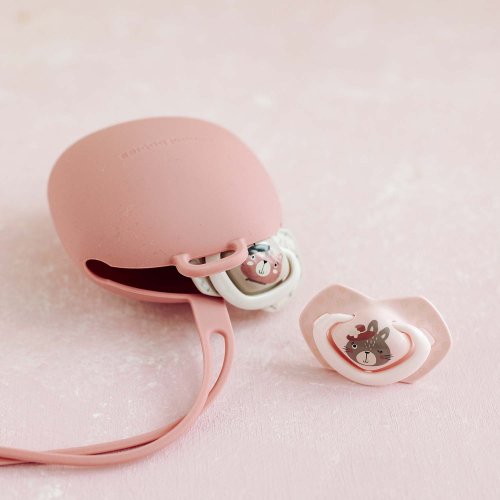 Silikonové pouzdro na dudlík ochrání oblíbený dudlík vašeho miminka při procházkách, cestování i doma. Krásné a praktické silikonové pouzdro na dudlík pojme dva dudlíky standardní velikosti, které budou vždy čisté a připravené k použití. Pouzdro má kompaktní tvar a pohodlnou praktickou rukojeť, pomocí které jej lze snadno připevnit na kočárek, postýlku nebo tašku, aby byly dudlíky vždy po ruce.
