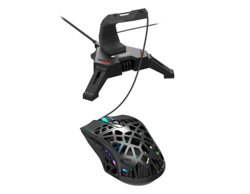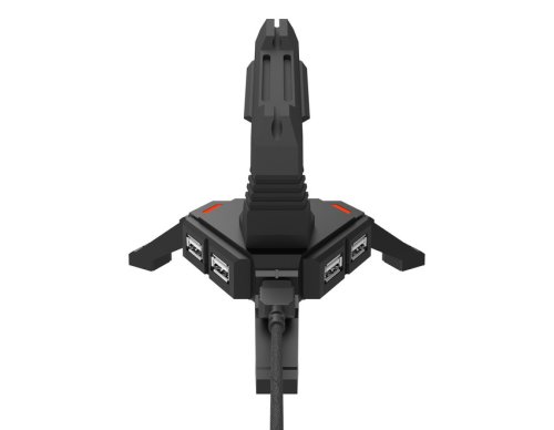 Tento model držáku kabelu myši je vybaven rozbočovačem se čtyřmi porty USB, díky kterému je ještě funkčnější a užitečnější. Prostřednictvím vestavěného rozbočovače můžete připojit čtyři zařízení, což z tohoto držáku dělá perfektního pomocníka pro hraní i práci. Díky pružnému silikonovému ramenu nebude držák omezovat pohyb myši ani se při náhlých pohybech nebude převracet. Držák spolehlivě chrání kabel myši před zamotáním a zároveň také brání svalení předmětů na stole při chaotickém pohybu kabelu. Díky eliminaci faktoru hmotnosti kabelu je myš rychlejší a svižnější. Základna tohoto zařízení má vestavěná závaží, aby byla co nejstabilnější. To je u tohoto typu zařízení zásadní, protože musí zajišťovat protiváhu během náhlých pohybů myši. Díky tomu se můžete maximálně soustředit na hru!