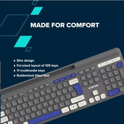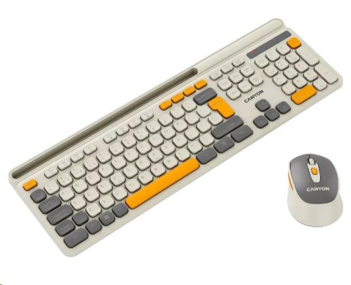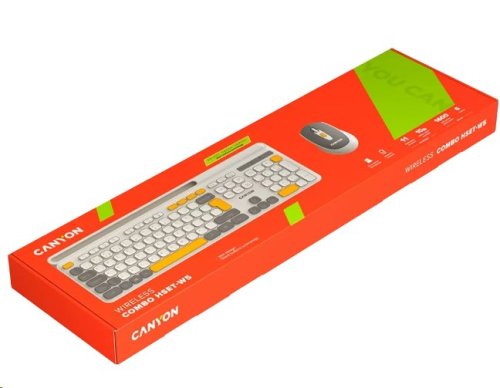 Vstupte do světa bezdrátových kouzel s kombinací klávesnice a myši Canyon! Čeká na vás pracovní prostor bez nepořádku. Klávesnice se stane vaším partnerem pro produktivitu, protože má plnohodnotné rozložení se 105 klávesami včetně multimediálních zkratek, které urychlí váš pracovní proces. Spínače s nůžkovým mechanismem zajišťují tiché psaní, takže se můžete soustředit na své úkoly bez nepříjemného klapání. Tyto spínače jsou také odolné, mají životnost 10 milionů stisknutí. Díky ergonomickému rozložení je psaní na této klávesnici jako hračka. Součástí setu je myš, která má tiché spínače a hezký design. Její na dotek měkký pogumovaný povrch je odolný a šetrný k vaší dlani. Je vybavena šesti tlačítky s nastavitelným DPI. Tento set Canyon je napájen standardními alkalickými bateriemi a je vždy připraven k akci. Vyzkoušejte tři jedinečné barevné kombinace, kdy myš vždy ladí s klávesnicí. Užívejte si svobody s bezdrátovou kombinací Canyon HSET-W5!