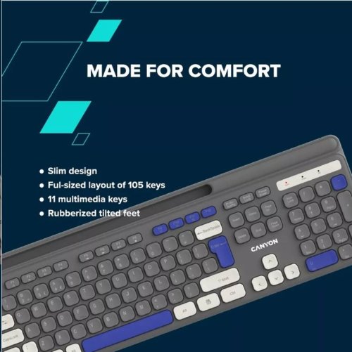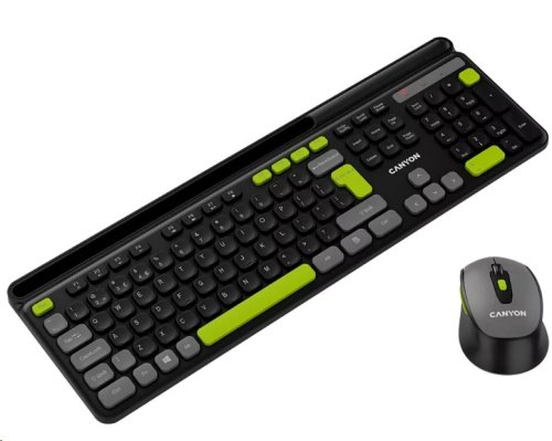 Vstupte do světa bezdrátových kouzel s kombinací klávesnice a myši Canyon! Čeká na vás pracovní prostor bez nepořádku. Klávesnice se stane vaším partnerem pro produktivitu, protože má plnohodnotné rozložení se 105 klávesami včetně multimediálních zkratek, které urychlí váš pracovní proces. Spínače s nůžkovým mechanismem zajišťují tiché psaní, takže se můžete soustředit na své úkoly bez nepříjemného klapání. Tyto spínače jsou také odolné, mají životnost 10 milionů stisknutí. Díky ergonomickému rozložení je psaní na této klávesnici jako hračka. Součástí setu je myš, která má tiché spínače a hezký design. Její na dotek měkký pogumovaný povrch je odolný a šetrný k vaší dlani. Je vybavena šesti tlačítky s nastavitelným DPI. Tento set Canyon je napájen standardními alkalickými bateriemi a je vždy připraven k akci. Vyzkoušejte tři jedinečné barevné kombinace, kdy myš vždy ladí s klávesnicí. Užívejte si svobody s bezdrátovou kombinací Canyon HSET-W5!