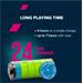 V každém sluchátku je 30mAh baterie, takže na jedno nabití vydrží až 24 hodin přehrávání. Přiložené nabíjecí pouzdro s kapacitou 200 mAh nejenže udrží vaše sluchátka v bezpečí, ale také nabízí několikanásobné další nabití.