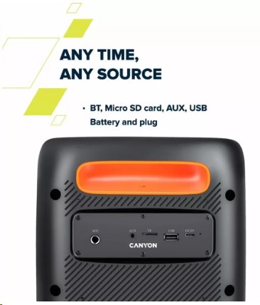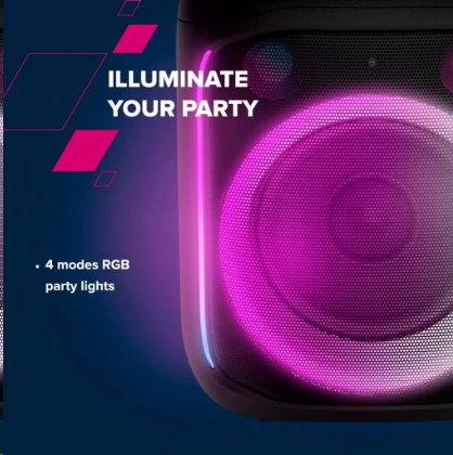 Produktové vlastnosti Podsvícení RGB Výkon 40 W Ekvalizér se 6 režimy Výkonné basy Bluetooth 5.0 Dosah až 10 m Zdroje: BT, karta MicroSD, AUX, USB 6,3mm jack pro mikrofon a kytaru Režim True Wireless: připojení a synchronizace dvou reproduktorů Výdrž baterie až 4 hodiny