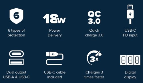 Kapacita 20 000mAh umožní opakované nabíjení elektronických zařízení Dva USB výstupy a USB-C umožní dobíjení více zařízení současně S podporou rychlého nabíjení budete mít zařízení k dispozici v rekordně krátkém čase O zbývajícím stavu baterie informuje přehledný digitální displej Kompaktní rozměry a nízká hmotnost usnadní přenášení v tašce či batohu