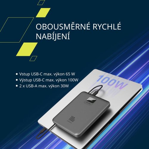 podpoře rychlého nabíjení až 100 W můžete bez námahy nabíjet své notebooky,