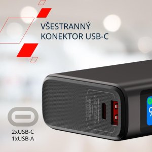 Seznamte se s powerbankou OnPower 230, která hladce udrží krok s vaším rychlým životem. S obrovskou kapacitou 20 000 mAh zvládne cokoli od nabití notebooku až po udržení telefonu a gadgetů nabitých po celé dny. Cestování, práce na dálku nebo zvládání nejrušnějších dnů s touto powerbankou po boku bude hračka! Díky působivému výkonu 130 W si OnPower 230 zaslouží pověst nabíjecího zdroje. Díky dvěma portům USB-C a USB-A můžete nabíjet více zařízení najednou s bleskovou rychlostí. Je ideální pro každého technického nadšence, který vyžaduje vysokorychlostní nabíjení. Inteligentní digitální TFT displej se postará o to, abyste byli informováni na každém kroku, protože přesně zobrazuje úroveň nabití baterie a stav nabíjení. Díky robustnímu kovovému tělu powerbanka zvládne nárazy a pády bez úhony. Nespokojte se se základními funkcemi. OnPower 230 slouží navíc také jako hodiny, budík a zařízení pro sledování teploty. Jděte do toho naplno: s OnPower 230 bude váš život jednodušší, rychlejší a propojenější!