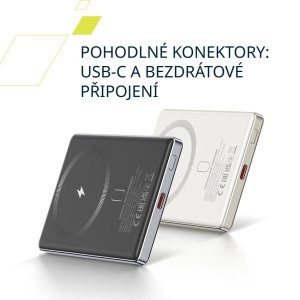 Bezdrátová power banka OnPower 505 v sobě snoubí přenosnost a stabilitu. Díky ultra tenkému profilu pouhých 8,9 mm a lehkému designu se snadno vejde do každé kapsy nebo tašky. Bude tou nejlepší volbou pro váš život na cestách. Power banka OnPower 505 je vybavena spolehlivou li-polymerovou baterií s kapacitou 5000 mAh, která poskytuje dostatek energie pro dobíjení základních věcí, jako je dobití telefonu během náročného pracovního dne nebo vašich sluchátek během víkendového výletu. Díky bezdrátovému výstupu 15W a funkci Magsafe powerbanku použite jednodušše kdekoli a kdykoli - stačí zacvaknout váš telefon na místo a nechat OnPower 505 udělat zbytek. Protože na rychlosti záleží, 20W port USB-C vaše zařízení rychle nabije a ušetří tak váš drahocenný čas. Powerbanka je vyrobena z prvotřídní slitiny hliníku a ohnivzdorných materiálů ABS+PC pro dlouhotrvající odolnost a styl v jednom. Navzdory malým rozměrům (105 mm x 66 mm x 8,9 mm) poskytuje velký výkon. Power banka OnPower 505 vám pomůže zvládnout nabitý program i každé vaše dobrodružství.