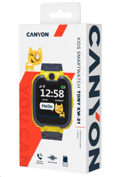 Tony KW-31 od Canyonu jsou malý a jednoduchý GSM telefon navržený jako hodinky. Vložte 2G GSM SIM kartu do hodinek a vaše dítě bude schopné volat a zvedat hovory pomocí tohoto malého přístroje. Videokamera a hlasový záznamník umožňují dítěti pořizovat fotografie a nahrávat hlasové záznamy o studiu nebo ve svém volném čase. Slot na MicroSD kartu umožní pomocí reproduktoru přehrávat hudbu nebo audioknihy. Sedm vzdělávacích her, stejně jako kalkulačka, budík, kalendář a stopky, budou užitečnými doplňky. Jednoduchá a pohodlná vychytávka, kterou není snadné rozbít nebo ztratit!