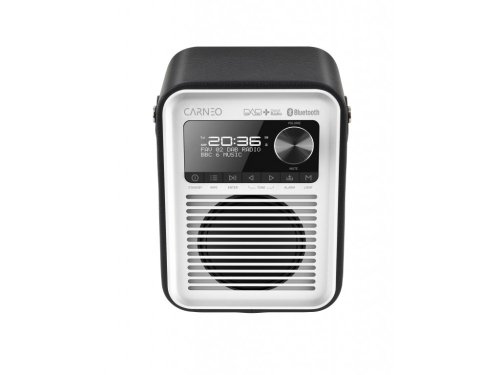 CARNEO D600 je kompaktní rádio s módním designem. Poslouchejte své oblíbené rozhlasové programy v pásmu FM nebo DAB+. Digitální tuner DAB+ přijímá signály z éteru čistě a bez šumu. Oblíbenou hudbu můžete poslouchat také bezdrátově prostřednictvím Bluetooth ze smartphonu nebo tabletu. S dalšími 40 předvolbami pro DAB a 40 předvolbami pro FM se už nikdy nebudete nudit. Zvukový výstup umožňuje poslech hudby přes kabelová sluchátka. Rádio má povrchovou úpravu z umělé kůže a design rukojeti, což zvyšuje jeho kvalitu a precizní zpracování. Díky vestavěné baterii Lion s kapacitou 1800 mAh můžete rádio používat kdekoli několik hodin, aniž byste jej museli připojovat k elektrické síti.