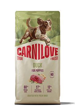 Díky čerstvé kachně je tato plnohodnotná receptura určena pro štěňata i pro březí a kojící feny. Čerstvá kachna je vysoce stravitelný a biologicky dostupný zdroj bílkovin, který plně odpovídá přirozeným potřebám psa. V kombinaci se zdravými tuky, dýní, mrkví, jablky, chondroprotektivy, prebiotiky a bylinkami poskytuje vitamíny a minerály nezbytné pro růst, silnou imunitu a zdravé svaly, kosti, klouby a zuby. Kompletní krmivo pro štěňata všech plemen. Vhodné také pro březí a kojící feny.
