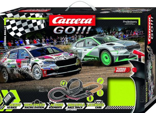 Škodovky poprvé na autodráze Carrera! Autodráha Carrera GO!!! dlouhá 4,9m s auty Škoda FABIA RS 2 obsahuje looping, zúžení dráhy, přemostění, rally dráhu, rovinky, zatáčky, díl s počítadlem kol a další díly. Můžete si sestavit další různé trati podle své fantazie. Délka trati: 4,9 m Rozměry po sestavení: 158 x 68 cm Rozměry balení 58 x 40 x 10 cm Vhodné pro děti od 6 let.