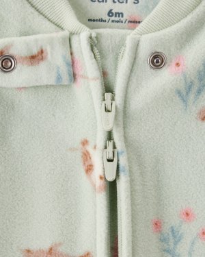 CARTER'S Overal na zip fleece Sleep & Play green Owl dívka 3m/vel.62