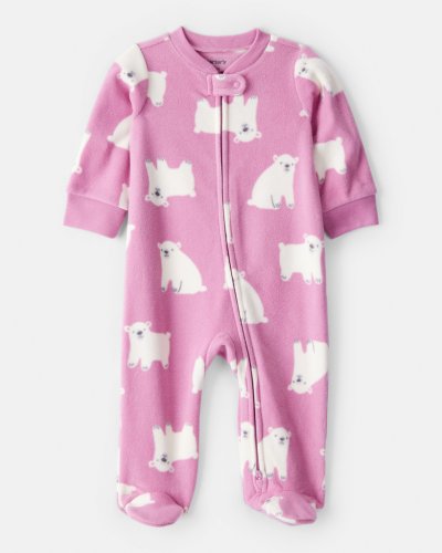 CARTER'S Overal na zip fleece Sleep & Play růžový Polar bear dívka 9m/vel.74