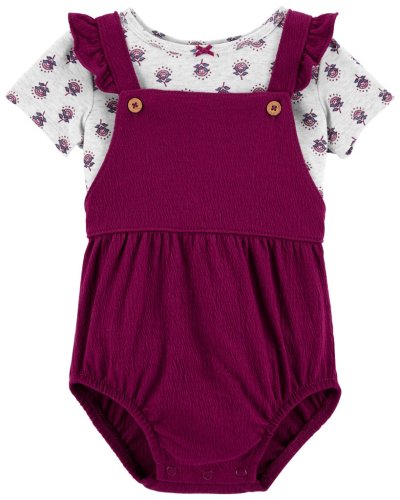CARTER'S Set 2dílný triko kr. rukáv, kalhotky na kšandy Purple Flowers holka 3m