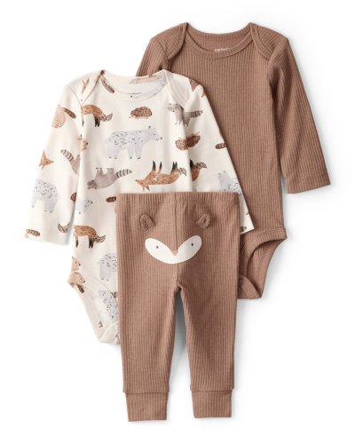 CARTER'S Set 3dílný body dl. rukáv 2 ks, kalhoty brown Fox chlapec 3m/vel.62
