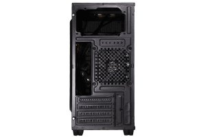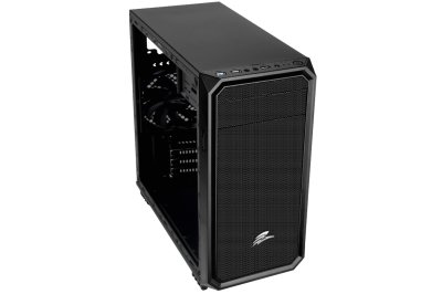 Skříň můžete vybavit až čtyřmi 120mm ventilátory. Dva z nich umístíte do přední části skříně a jeden z levé strany. Zadní 120mm ventilátor je již předinstalovaný. Mřížka navíc umožňuje efektivní „airflow“, takže vzduch dokonale proudí skříní. Pomáhá udržet nízké teploty v okolí zabudovaných komponentů.