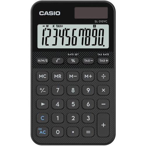 kapesní kalkulačka 10-místný LCD displej výpočet DPH profesinální výpočet procent výpočet marže s tlačítkem procent odmocnina opravné tlačítko výpočty s časem změna znaménka (+/-) vyrovnávací paměť 4-tlačítková paměť zobrazení funkcí na displeji 3-číslicový odělovač solární/bateriové napájení záložní baterie (1x LR54) automatické vypnutí plastová tlačítka rozměry 70x118x8 mm hmotnost 50 g barva pouzdra černá