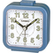 Budík Napájení z baterie Pouzdro ve tvaru čtverce Plastové pouzdro Modrá barva pouzdra Ručičkový ciferník Bílá barva ciferníku Ciferník s arabskými čísly Budík