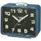 Budík Napájení z baterie Pouzdro ve tvaru obdelníku Plastové pouzdro Modrá barva pouzdra Ručičkový ciferník Černá barva ciferníku Ciferník s arabskými čísly Budík
